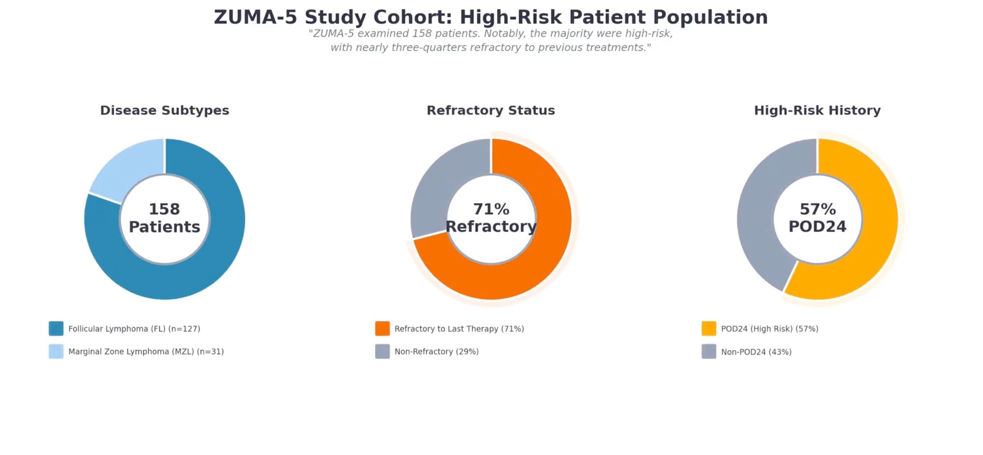 Acknowledging limitations: ZUMA-5 was a single-arm study, and outcomes should be interpreted in that context. Patient selection, supportive care at specialized centers, and the specific characteristics of enrolled patients all influence results. Not all patients in routine practice will match the trial population.