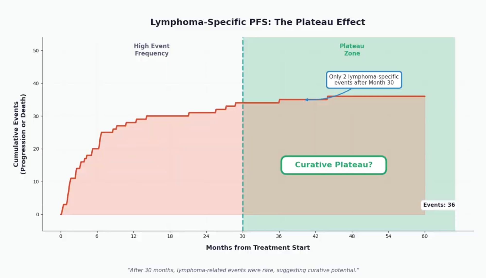 For a disease historically characterized by repeated remissions and relapses, the emergence of a plateau in lymphoma-specific outcomes—with rare events beyond 30 months—suggests that for a substantial proportion of patients, a single CAR T-cell infusion may provide lasting disease control.