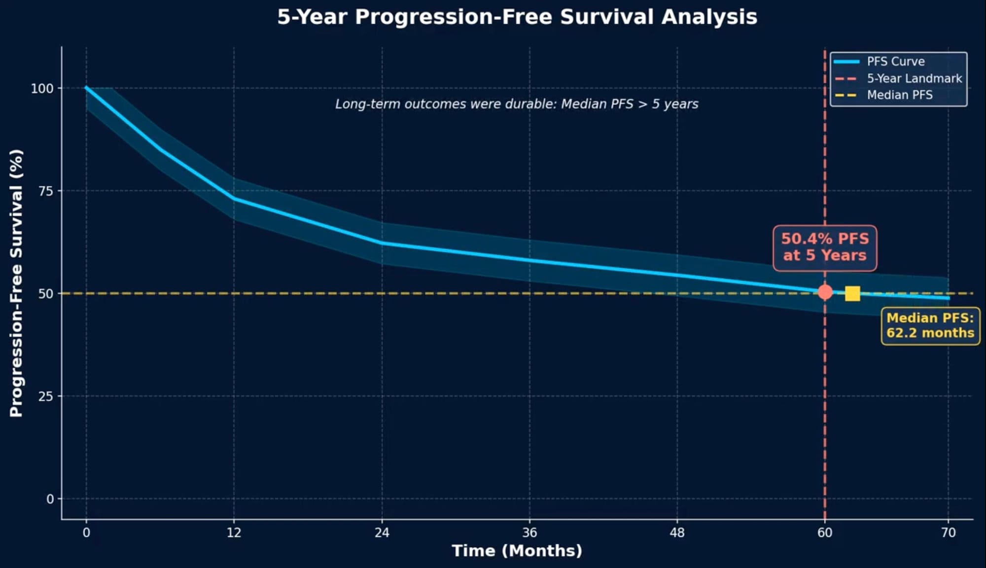 - 50.4% of patients reached the 60-month progression-free survival landmark